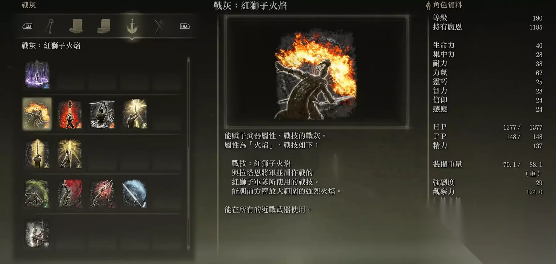 魔力系与神圣系的战灰为法术流和信仰流玩家提供了核心的输出手段,它们的强度往往体现在远程打击和属性附加效果上。辉石魔砾、彗星亚兹勒等魔法攻击战灰能够从远距离安全地施展打击,而熔岩火浆与红狮子火焰则能提供可观的火焰属性持续伤害,另一种强力魔法黑焰漩涡则在造成火焰伤害的同时还能附加有利的减益效果。神圣刀刃与共享圣律则是应对特定敌人类型的关键,它们能为武器附加显著的圣属性攻击力,其中神圣刀刃释放的黄金刀刃对亡灵系敌人具有特效。而对于信仰战士而言,黑焰漩涡等兼具攻击与状态的战灰往往是高效的选择,可以显著丰富战斗手段。
