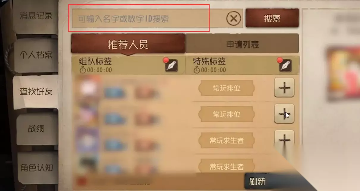 3、可以在上方搜索框中输入名字或数字id,并进行搜索。
