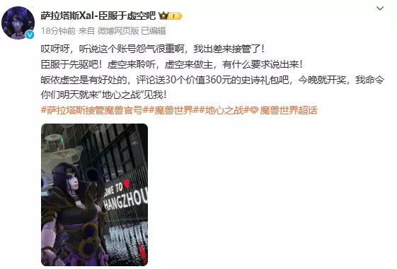 【国服正式服最新攻略汇总】 魔兽世界国服最新消息 2024年8月22日 萨拉塔斯接管魔兽官号 内容:今天魔兽世界的官号整了个活,让11.0的反派萨拉塔斯进行了接管,发布了全新的信息。