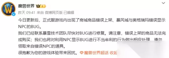 4、正式服商品错误上架、显示错误npc的bug。 内容:在今日的更新之后,对游戏中出现的bug内容公告。