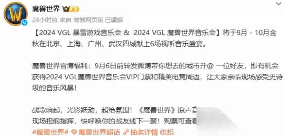 3、VGL暴雪游戏音乐会 内容:VGL2024魔兽世界音乐会相关信息介绍。