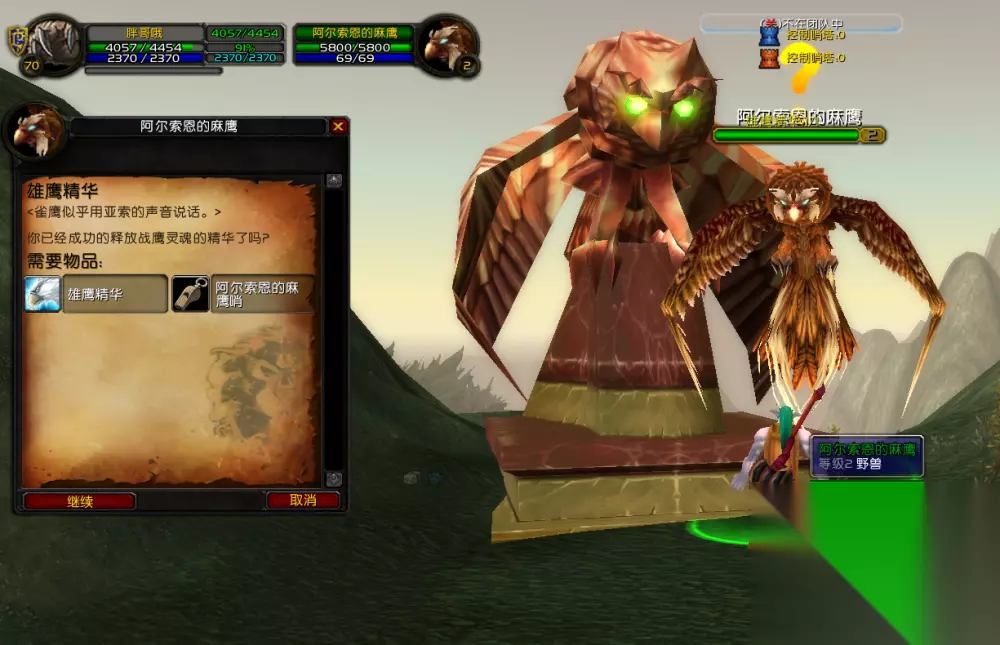 先完成《乌鸦之书》,再回去找“风歌”。接下来,玩家会被要求前往纳格兰。在纳格兰暮光岭东侧的山上,有个NPC,玩家得找到这个NPC。这个NPC身旁有许多麻鹰,他会给玩家一个抓捕麻鹰的任务。等玩家完成这个任务后,就前往泰卡罗森林。