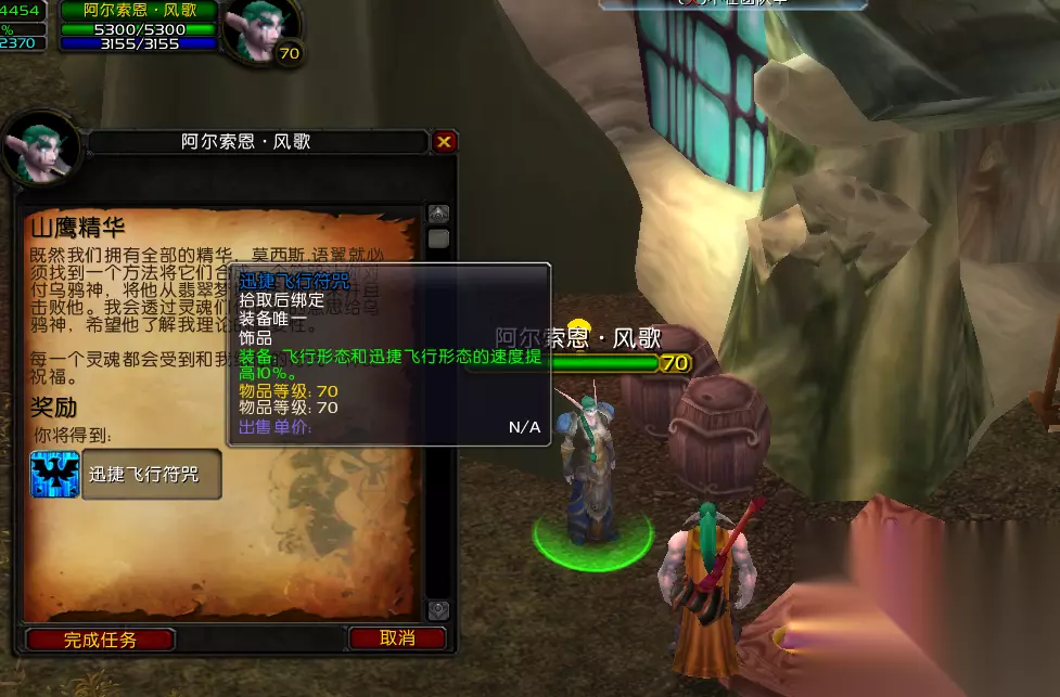 在完成《山鹰精华》这个任务后,如果又回到刀锋山的常青林,就能得到一个饰品,这个饰品可以让飞行速度提高10%呢。而且这时候还会接到下一个任务,就是《回到赞加沼泽》。