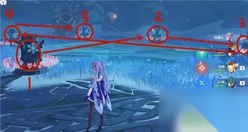 原神雪地冰柱顺序 原神雪地冰柱顺序是,先启动机关注意红色仙灵的移动路径。它会提示玩家点亮冰柱子的顺序,然后切换冰系角色,推荐用凯亚。对1号柱子放一个小技能,2至5号柱子用大招激活即可。 1、首先启动机关,注意红色仙灵的移动路径,它会提示玩家点亮冰柱子的顺序。