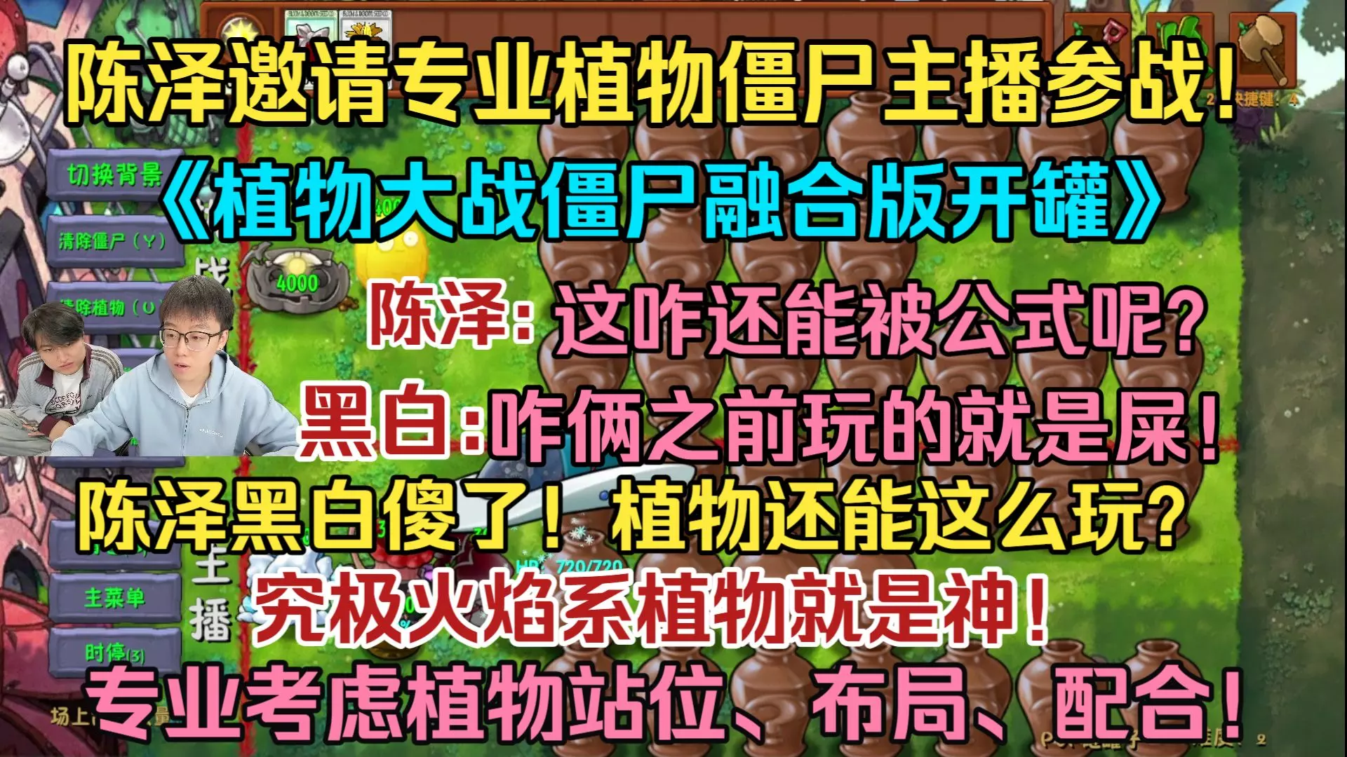 ⚡陈泽邀请专业植物僵尸主播参战!《植物大战僵尸融合版开罐》陈泽黑白傻了!究极火焰系植物就是神!报植物站位、布局、配合还能这么玩?蓝飘飘fly⚡陈泽直播回放