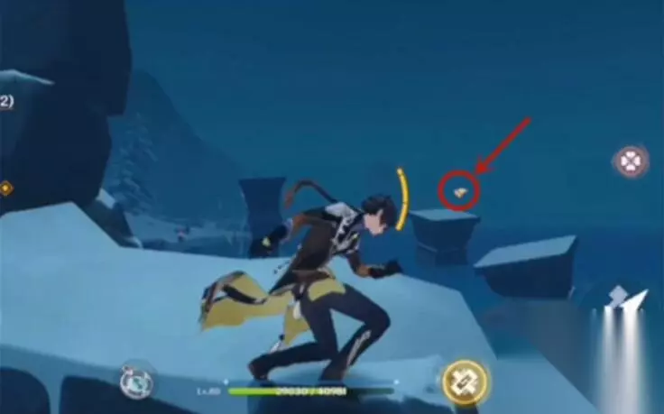 2、接着像前面看就能发现在一个倒塌的柱子上有仙灵,跳过去将仙灵接回来。