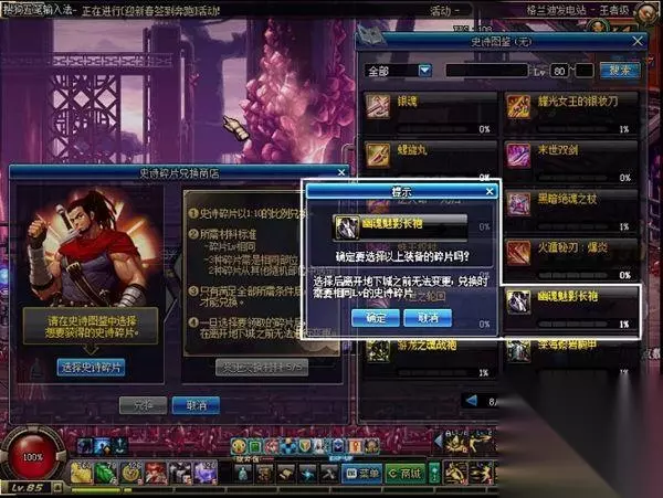 - 点击选择史诗碎片后在史诗图鉴中选择想要换取的史诗装备。