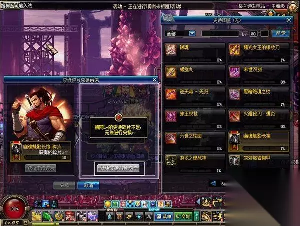 * 获得任意一个史诗碎片时可激活当前史诗装备的合成。 * 若指定史诗装备的碎片达到1000个时,加上若干武器灵魂和宇宙灵魂合成史诗。