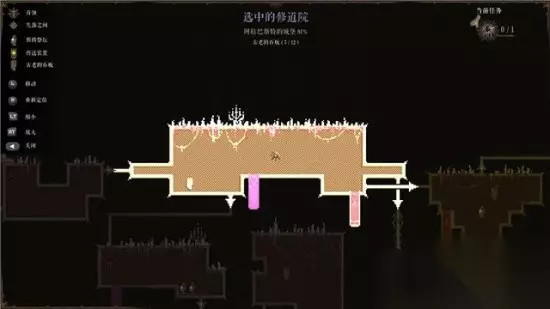 过关斩将之后,最后会来到选中的修道院。 这里面是一个中立的营地,这个营地有两个出口,一个通往乌鸦女士(BOSS)房间。 另一个通往玛瑙神殿。