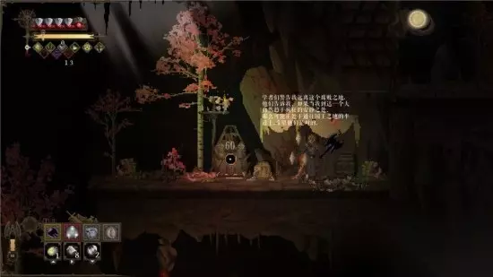 然后你肯定会坠入一片有毒的区域,身上中毒。 这种毒在你移动的时候就会产生倒计时,一旦倒计时结束,就会使你丧命。 因此你需要来到这个驱毒祭坛,奉献20点信仰值,将身上的毒驱除掉。 这也是游戏教程的一部分,教会你如何使用祭坛解除身上的异常状态。