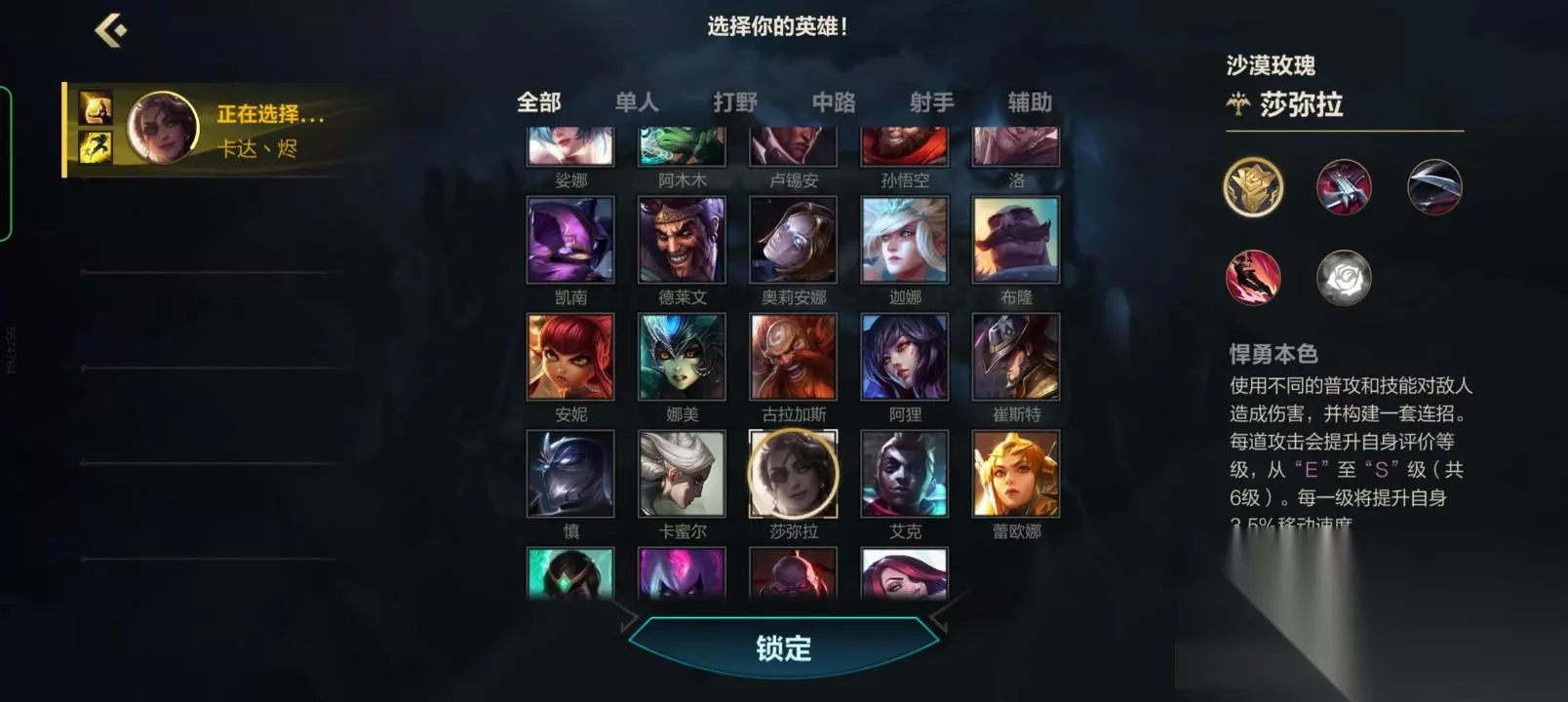二,莎弥拉的玩法思路 ①莎弥拉虽然是一个看似很出色的很全能的射手,但凡事都有对立面。毕竟不是一个纯远程射手,这样莎弥拉在劣势局,突脸时尤为的尴尬。前期对线虽然是莎弥拉的强势期,但这也是莎弥拉的关键期,建立优势才是重点。前期对线最稳的连招就是A1技能A配合走砍输出,时机一到3技能直接突脸配合12A继续输出。