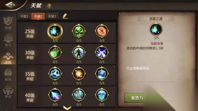 【禁咒】对于能辅助、能控制的巫医,额外加那么一点血也是可以的,第三排把原本属于【禁咒】流派的技能替换成加血的充能。其余的图腾依旧是按照流派方式来点即可。