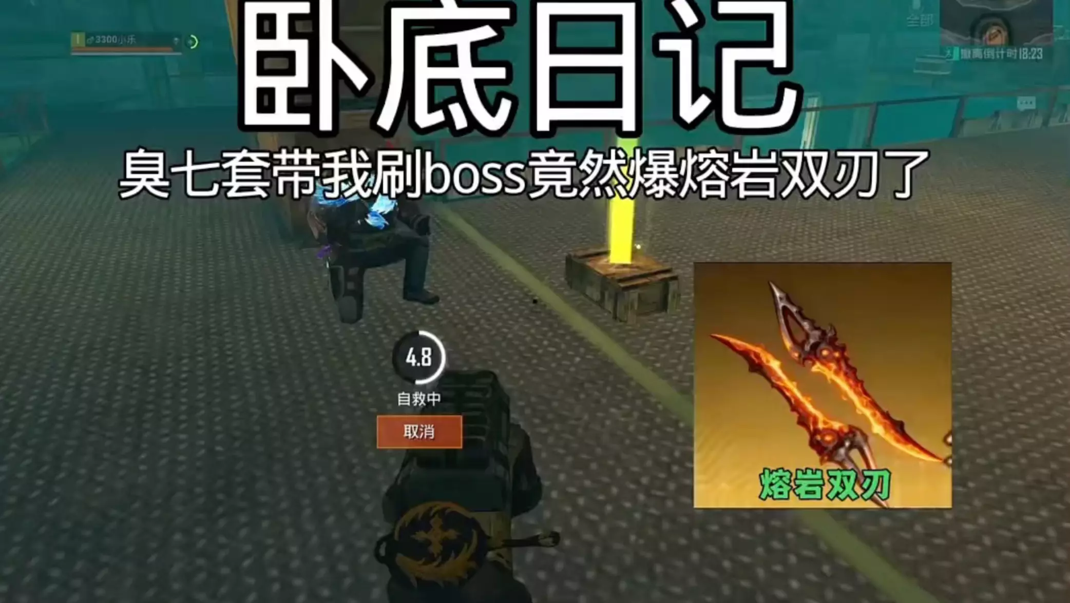 这是《和平精英》地铁逃生模式的游戏解说,介绍了刷熔岩双刃的高效方法:找BOSS狂火·维列,推荐使用带消音的M338轻机枪,还能获取装备变卖物,同时展示了获取装备后撤离的操作。