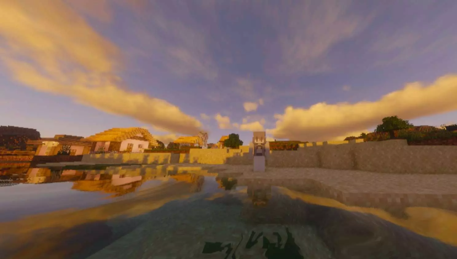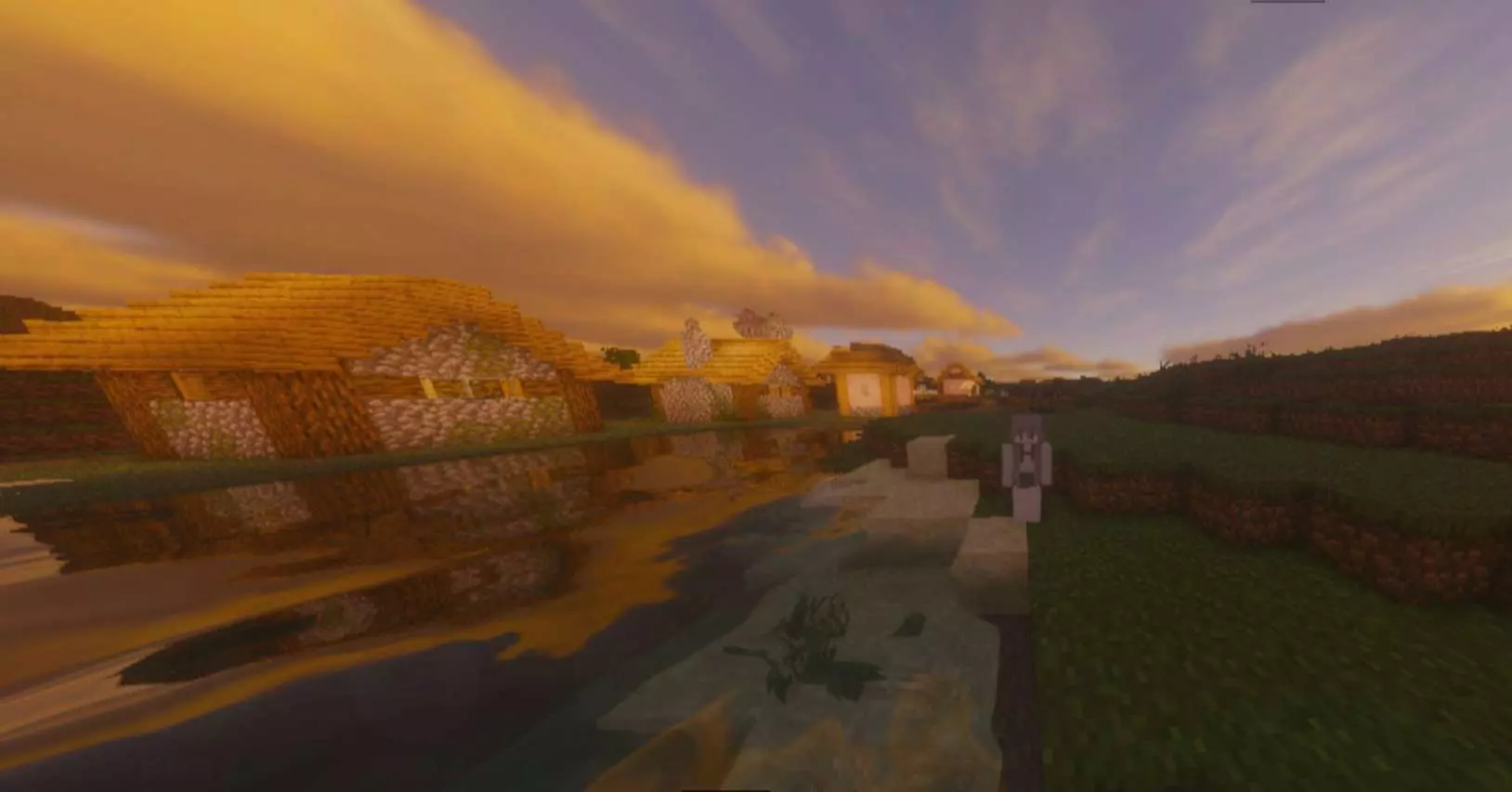 原来在MC的世界,连日落都藏着最温柔的日常。」