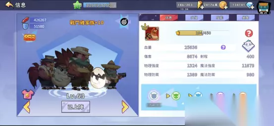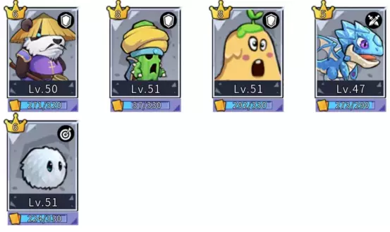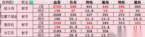 在普通关卡中,主要是为了打乱敌方阵型,将对面肉盾击飞从而更快打掉对面射手,然后紫色锤手使用技能后会增加40级近反等级,橙色锤手会增加60级近反等级,加上锤手本身觉醒技能有15级近反,可以快速反死对面战士。 在精英关卡中主要是为了将怪物击飞后快速击杀对面伙伴,从而使得对面伙伴的强度转换装备失效(台服中,后期精英关卡的野怪伙伴,均为150级SSS,装备全红全满级全加成极值物/魔防,不快速击杀掉你根本打不动对面,尤其是己方伙伴被对面伙伴干掉之后),这个操作如果只有一个紫色锤手需要掌握好时机,多用用就好,如果有两个就比较简单了,可以快速推进精英关卡进度。 所以肉盾家族,在前期有且仅有恶魔锤手一个选择,别的都往后稍稍吧。 5.由于宝箱积分和熔炼的存在,建议大家直接培养SSS射手,使用SSS射手+S恶魔锤手+背景板即可推图到100,正式过渡到中后期。 SSS射手中按领导力排序为164战斗鸡、160巴巴六、158达摩不倒翁、125莱特雄机和125冰芯灵,面板大致如下图(缺886)