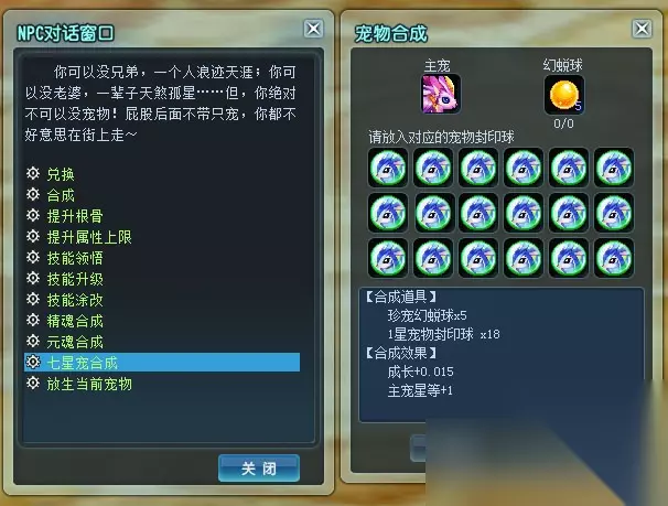 二)放入18个对应宠物封印球和指定数量的幻蜕球,就可以进行合成了!合成必定成功!