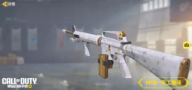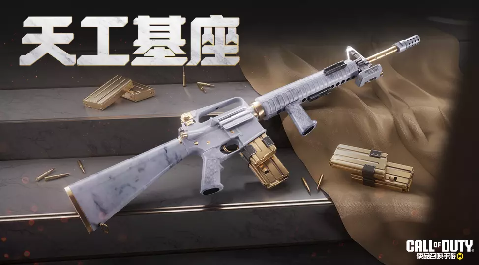 M16-天工基座纯白色的枪身上隐约可以看到漂浮的纹理,搭配金色的枪管和弹匣点缀,给人纯净、精致的感觉。