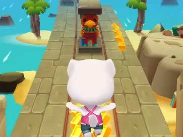 这是手游《汤姆猫跑酷》的游戏内容展示,玩家操控安吉拉在城市道路、滨海道路等场景跑酷,躲避车辆等障碍,收集金币、道具,积累游戏分数,体验跑酷乐趣。