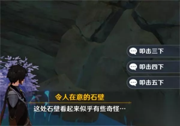 2、当大家来到任务地点后,会看见一个石壁;