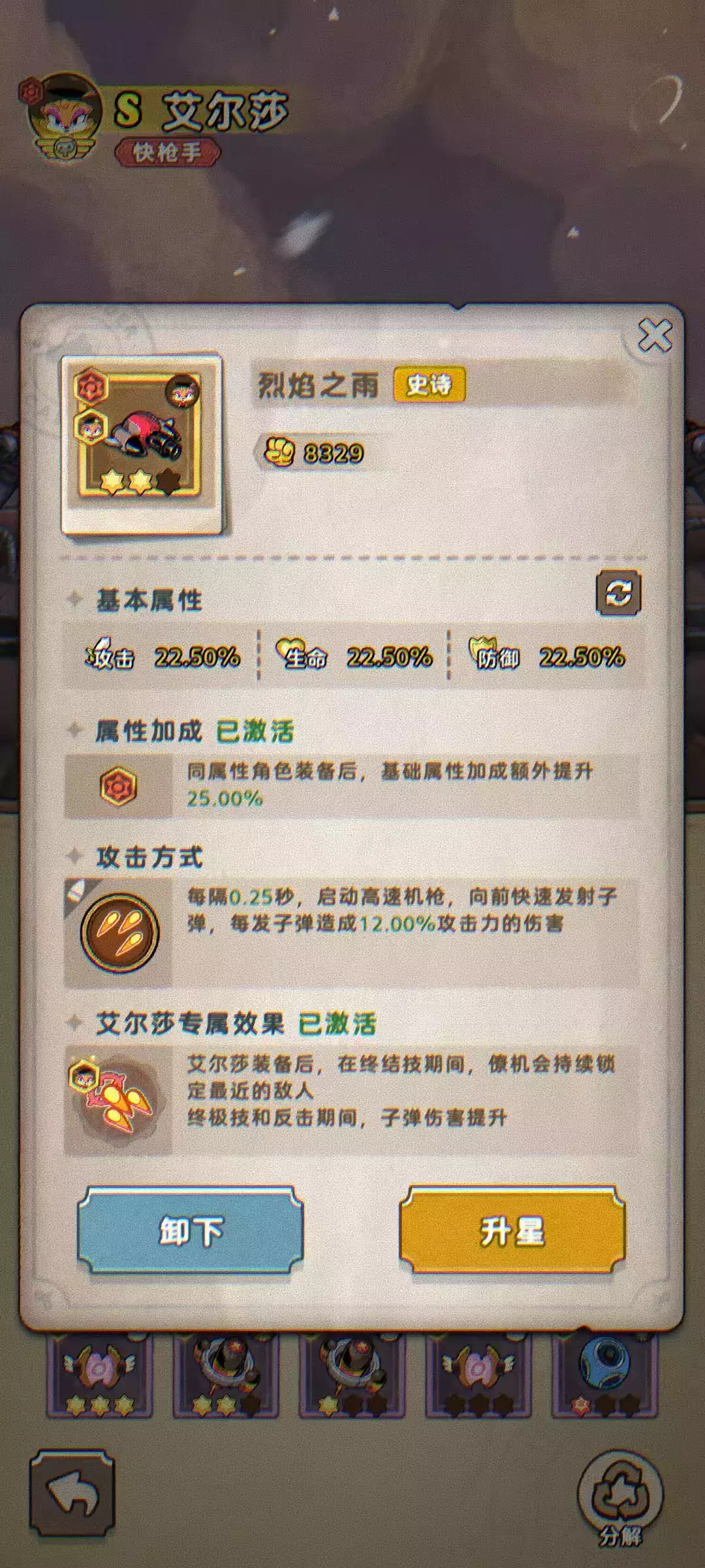 升级: 进阶后的装备还能消耗金币和对应部位的图纸进行升级,进一步提升属性。图纸主要在基础战役和特定副本(比如“气球派对”)产出。针对性刷图效率更高!