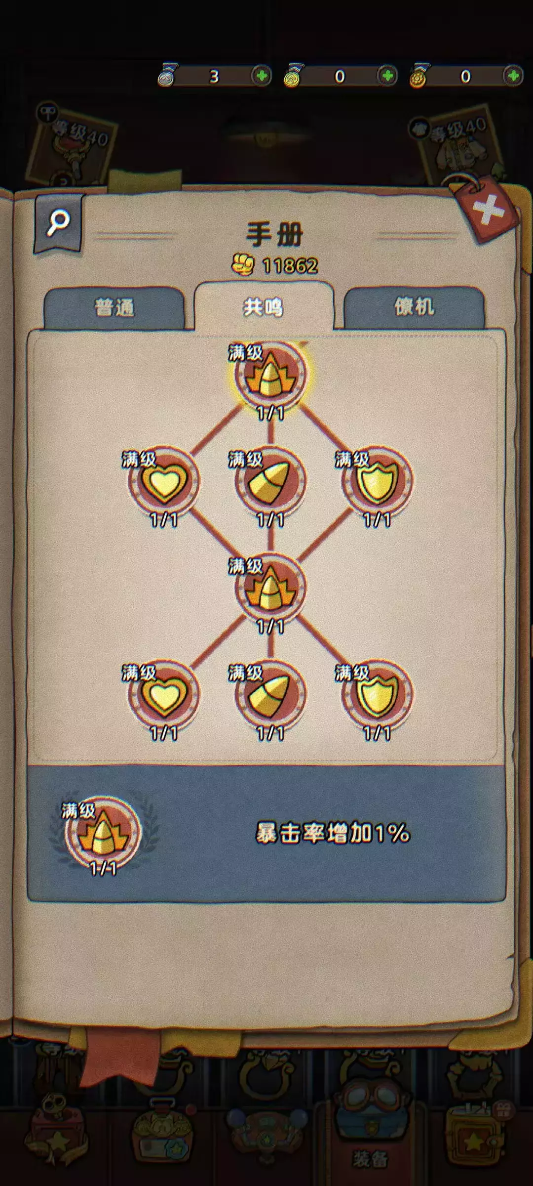 共鸣手册: 专注于核心战斗属性的百分比提升!主要强化攻击力、生命值、防御力、暴击率这四大金刚,简单直接地拔高你的输出和生存。