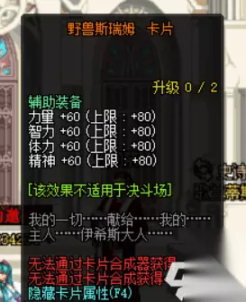 4、野兽斯瑞姆卡片(力量增加60,智力增加60,体力增加60,精神增加60),提升2级;