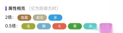 属性相克 2倍:地而、岩石、水 0.5倍:火、草、妖精、虫、钢、冰
