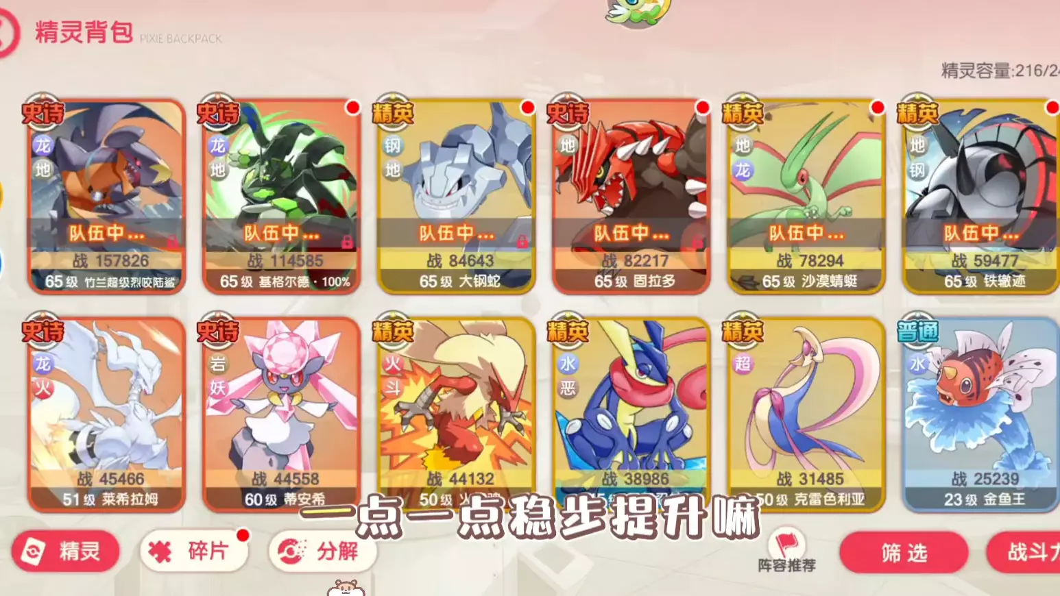 这是宝可梦类手游的玩家分享,玩家65级开启超进化,突破地龙后战力涨了一万,达到56万,还展示了游戏主界面、关卡界面以及精灵培养界面等内容。