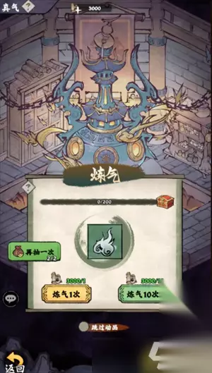 真气练气 1、消耗引气符可以进行练气。 真气抽取概率描述 白色真气:75% 绿色真气:15% 蓝色真气:7.5% 紫色真气:2.5% 2、每30次必出一个紫色或橙色真气;每次抽取消耗1张引气符;特权抽取不计入保底次数。