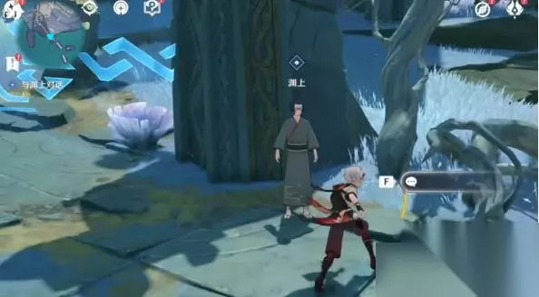 5、与遗迹内部2楼npc“渊上”对话,得知线索。 6、然后获得两个任务提示: