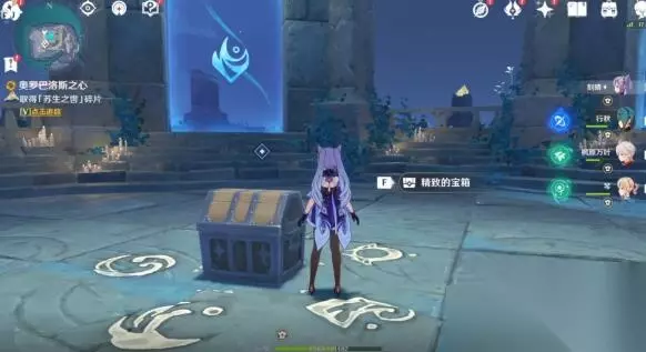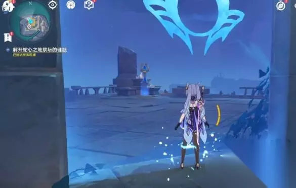 2、启动蛇心之地的祭坛密文,解开蛇心之地祭坛的谜题,将传送点附近的日月调至至常夜状态,观察建筑物中间地上画着的键纹图案和对应的数字顺序,依次触碰建筑物周围印有键纹图案的屏障,随后就会出现一个精致的保险,打开后获得碎片。