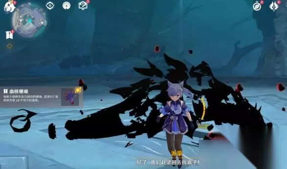 17、击败深渊咏者·渊火后,开启一段对话,可以在深渊龙蜥尸体上取得露子委托我们寻找的关键任务道具【血枝珊瑚】。
