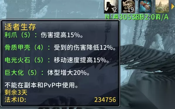 6、触发威压Buff 当适者生存Buff达到20层后,系统会自动给予你威压Buff,提高威势120%,进一步强化你的战斗力。 之后,每次继续扔恐龙魔精,只会叠加威压效果,不会再叠加适者生存的前置效果。