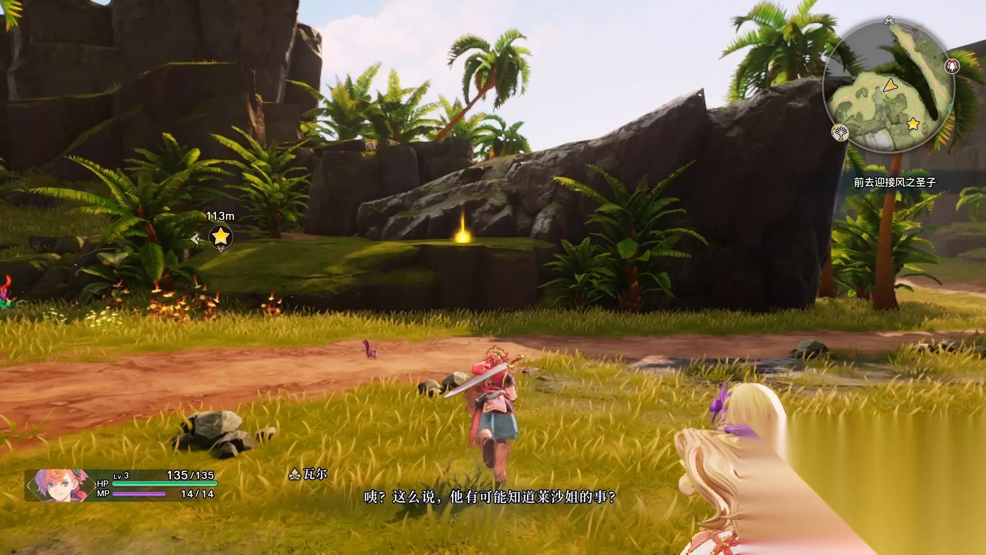 接着跑主线,我们直接从山上跳下去就是目的地了,触发剧情以后我们就正式来到风之谷了。