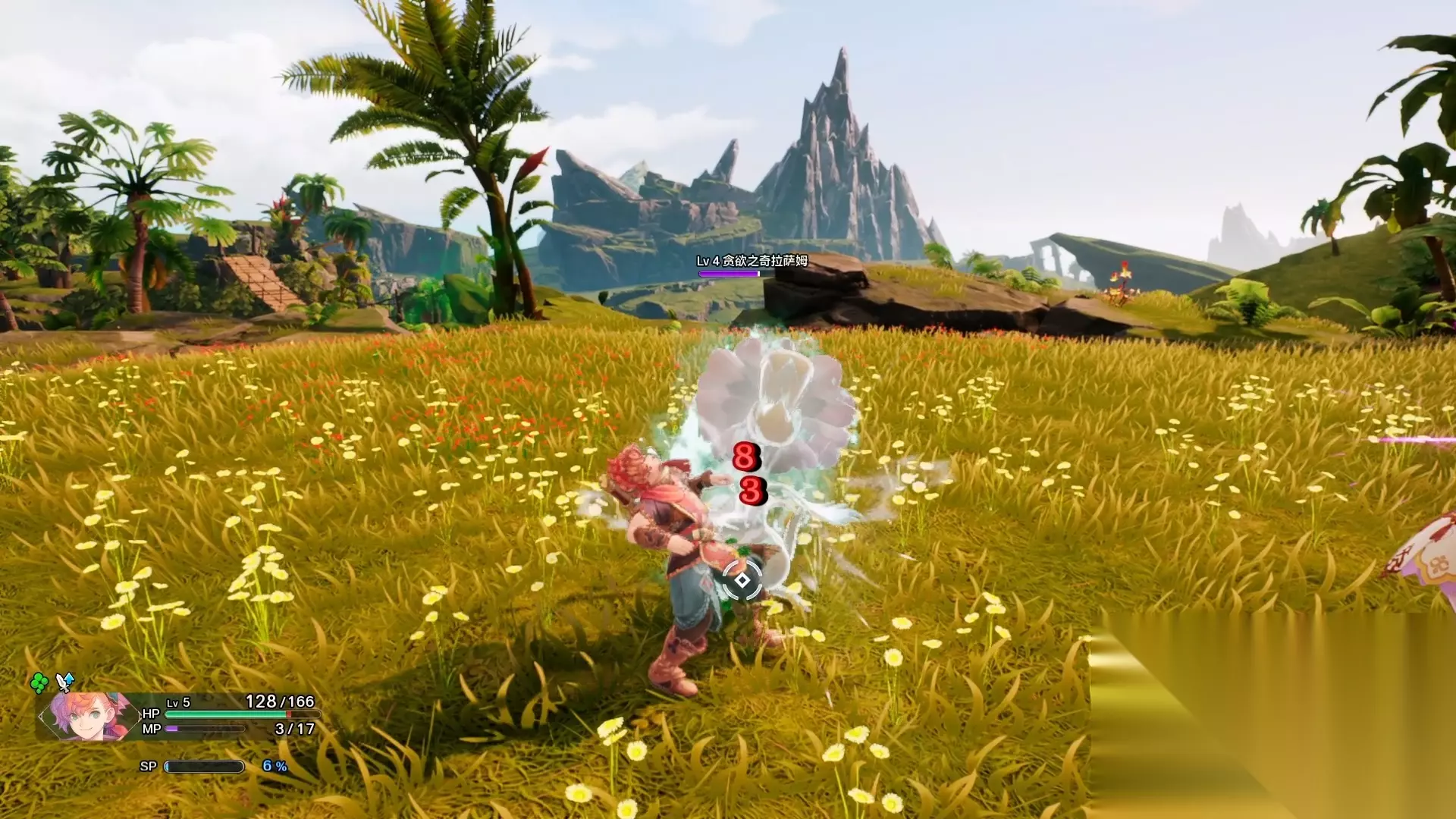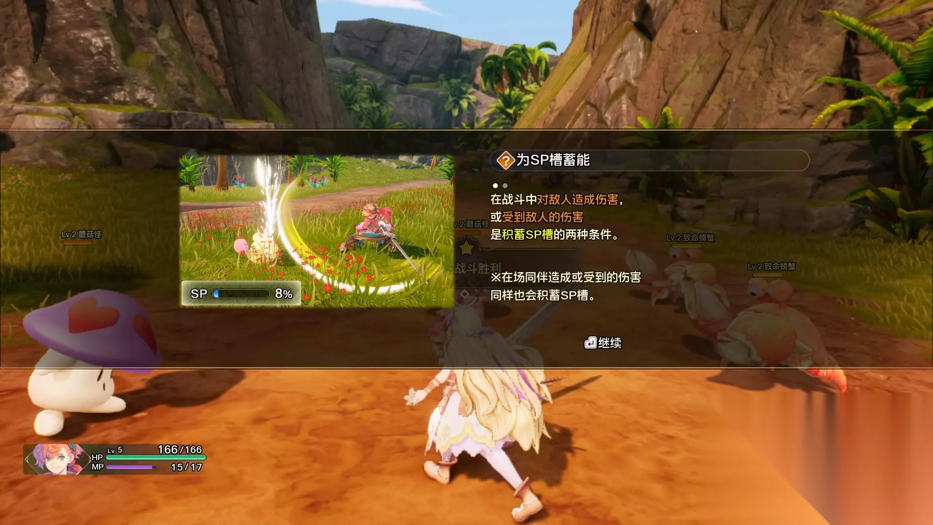 探索一番后,前往目标所在地,我们就可以进入战斗学会必杀技了。对敌人造成伤害或者受到敌人的伤害都会积攒sp条,sp条满了就可以释放必杀技。需要注意的是,能量条是共享的,所以放大招的时候需要根据战况思考放谁的大招比较合适,放完以后就会清0。