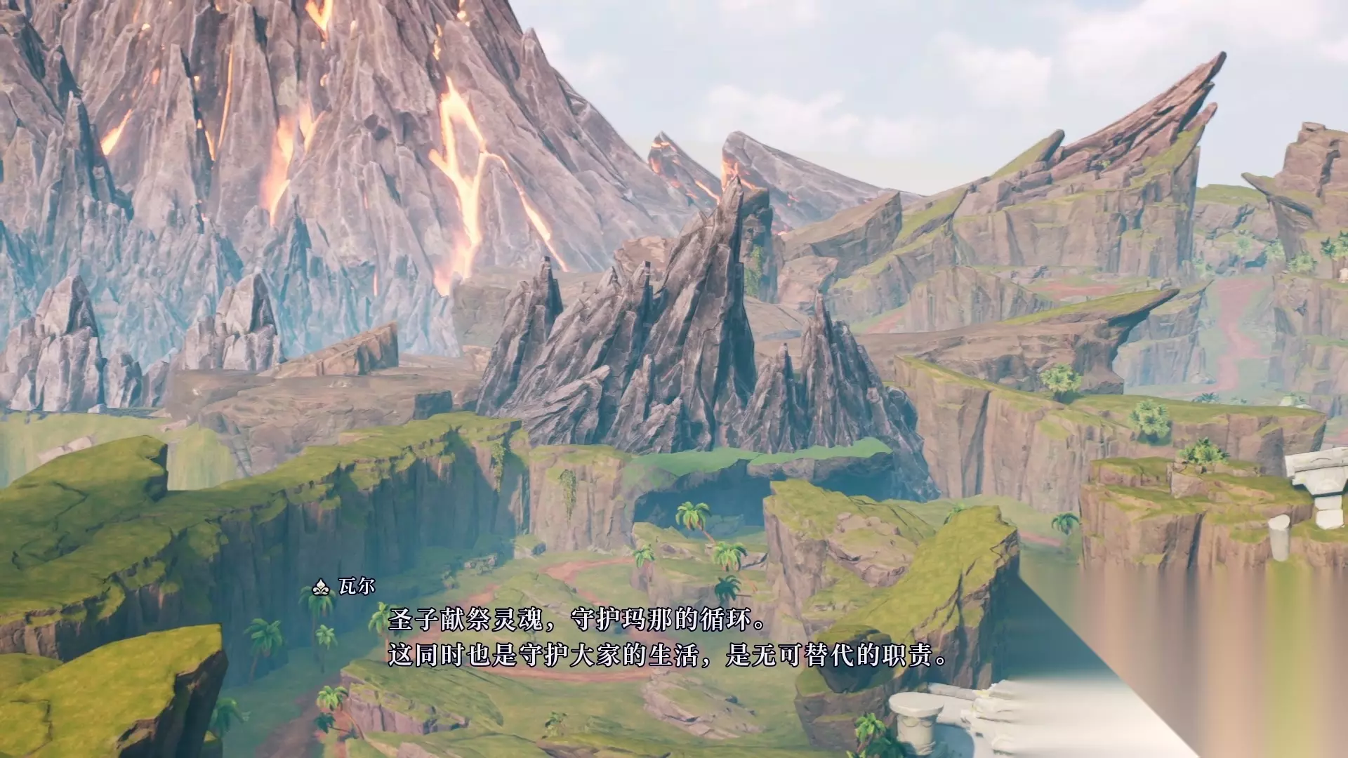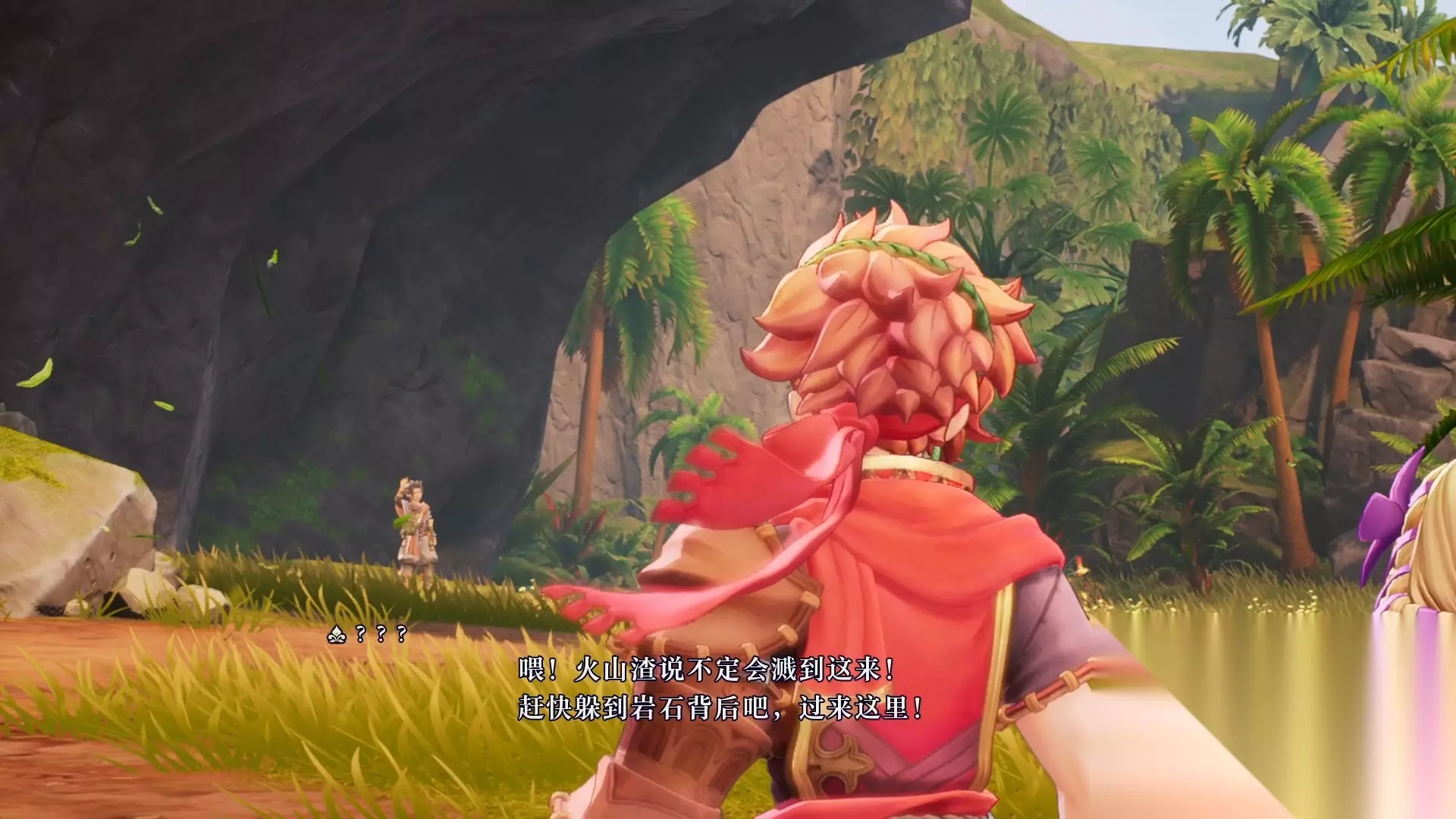 走到任务目的地,男主表示最近火山好像喷发的有点频繁,在男女主对话的时候突然出现一个熟悉的身影(声音)来找我们搭话。