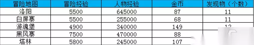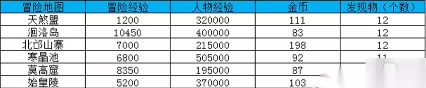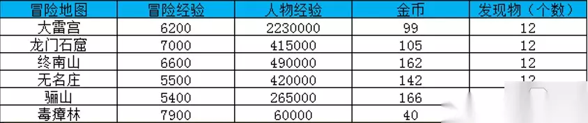 7.整理的冒险地图及经验,想冲冒险等级大家可根据这张表格选择冒险经验多的地图先冒险。 8.以上就是大唐无双的冒险地图及经验系列表啦~希望可以帮到你~