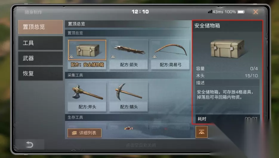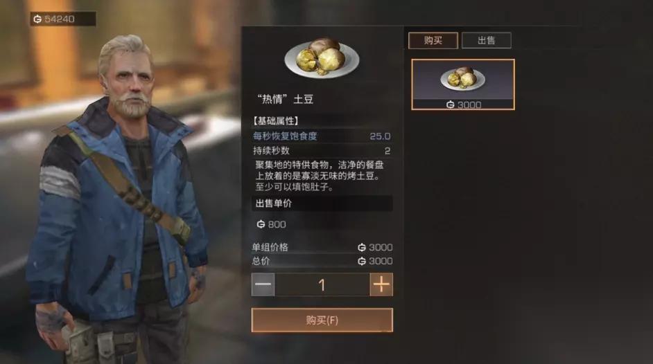 新的硬核服进行探索的时候,需提前进行食物、材料等的准备。野外的资源非常有限,狩猎以及采集浆果都可能碰到感染风险。随着时间自然增伤,玩家饱食度会慢慢开始下降。此时做任何活动都出现消耗,生命也会随之受到影响。因此在探索前要先把饱食度拉满,可先在场景中寻找NPC大卫。与其对话就进行购买界面,这里土豆单组价是三千。每个能提供五十点饱食的恢复,接着去进行砍树。得到的木材通过随身加工台,就能将安全储物箱做出来。