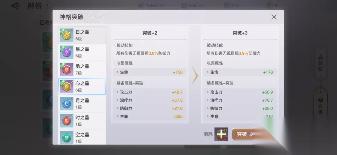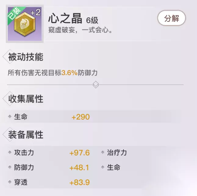 心之晶: 收集属性:生命 获取方式:商城绑玉购买、神格助力袋、每日礼包 评价分析:提高装备者伤害能力,PVP和PVE皆是如此,攻击向的神格。