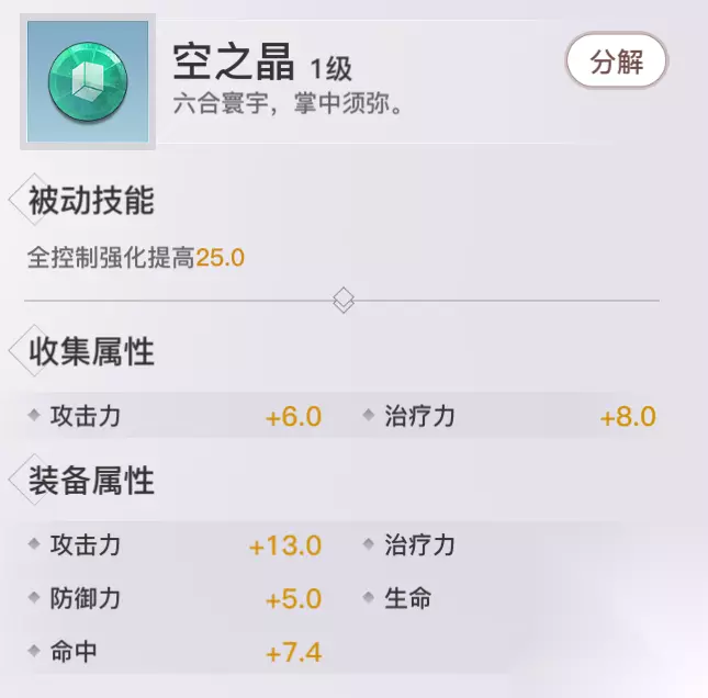 空之晶: 收集属性:攻击&治疗 获取方式:青麟镇妖、怒鳞商店、神格助力袋 评价分析:加强装备者PVP玩法中的控制能力与时间。