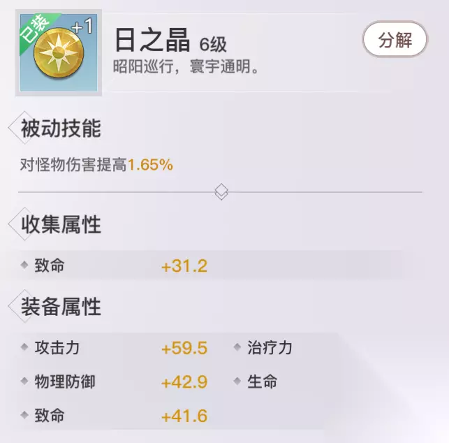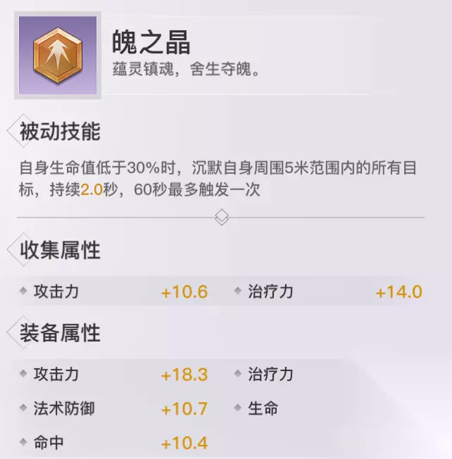 魄之晶: 收集属性:攻击&治疗 获取方式:帝社商店、摆摊、神格助力袋、每日礼包、领地战商店 评价分析:适合近战职业携带并参与PVP群战玩法,配合光刃的血绽诀使用效果应该会很好。