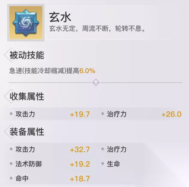 玄水: 收集属性:攻击&治疗 获取方式:公会拍卖、魂域之战拍卖、摆摊、神格助力袋 评价分析:减少装备者技能CD,PVP和PVE都非常适用的神格。