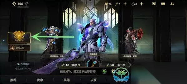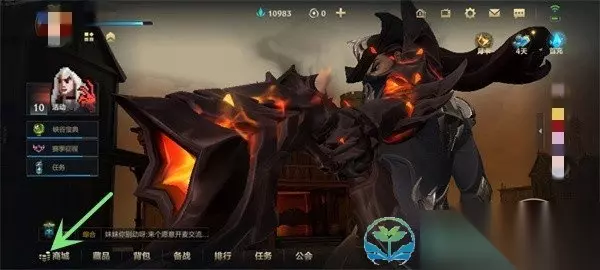 传说皮肤碎片获得方法 1、进入游戏去点击主界面左下方的【商城】。