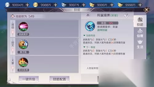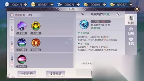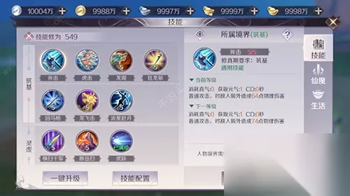 Lv39:真元爆发、雷霆震击 Lv49:凌波微步 Lv59:狮子吼 Lv69:天火狂龙