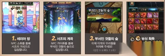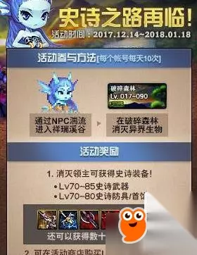 活动期间,通过赛丽亚房间的活动npc完成对话任务后,可以进入活动区域 然后进入破碎森林地下城,限制Lv17~90级角色进入,每个帐号每天限制进入5次 (网吧玩家可以进入10次)