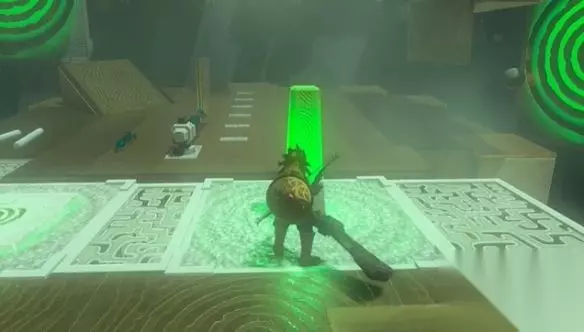 塞尔达传说王国之泪马亚奇诺乌神庙首先利用平台到达对面平台,然后用究极手将平台连接到新的平台上,使用武器攻击绿色柱子将两个球分别打入左右两边的黄圈中,随后大门就会打开,前往打开的洞门可以看到一个宝箱,打开宝箱获得精力药。