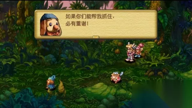先进入下一个场景,然后回来,触发捕捉小豆族事件。 与NPC交谈,小豆族逃走。