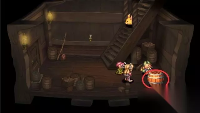前往海盗船,一直往下走,在最下层甲板找到颜色不同的木桶。
