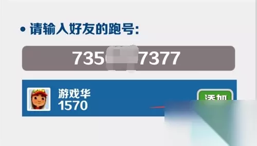 第四步:输入好友的跑号之后,下方就会显示跑号对应的玩家,点击添加之后,耐心等待好友的确认即可成功添加。