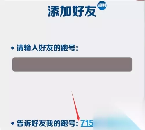 第三步:在此处可以输入好友的跑号,下方也会显示自己的跑号,通过这种方式可让好友得知自己跑号并发过来。